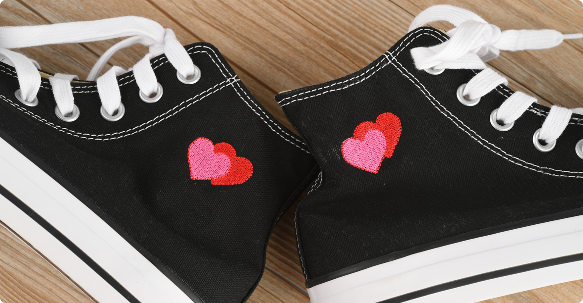 推薦使用特殊夾具(鞋框)進(jìn)行刺繡,同時(shí)根據(jù)待刺繡部分的位置選擇左夾框、中間夾框、右?jiàn)A框。根據(jù)鞋子材質(zhì)與面料的厚度選擇襯紙的材質(zhì)與層數(shù)。